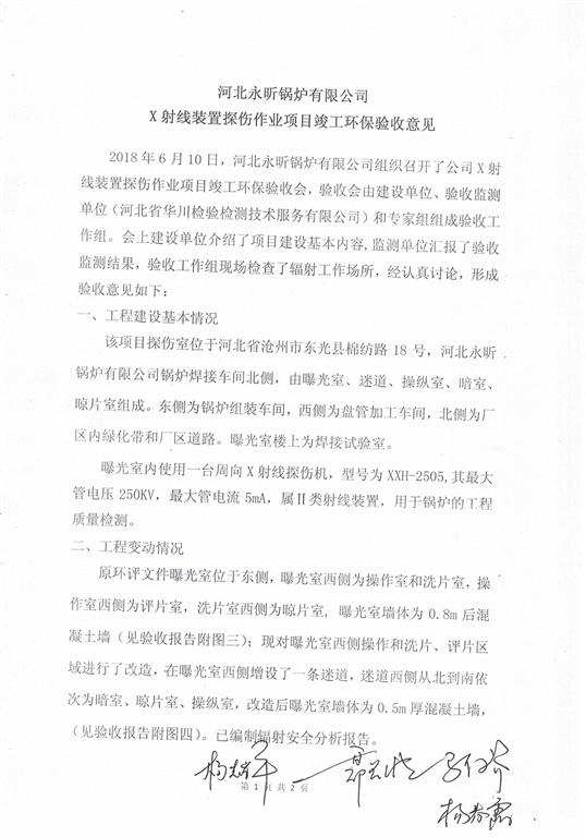 驗(yàn)收?qǐng)?bào)告及驗(yàn)收意見(jiàn)-河北永昕鍋爐有限公司